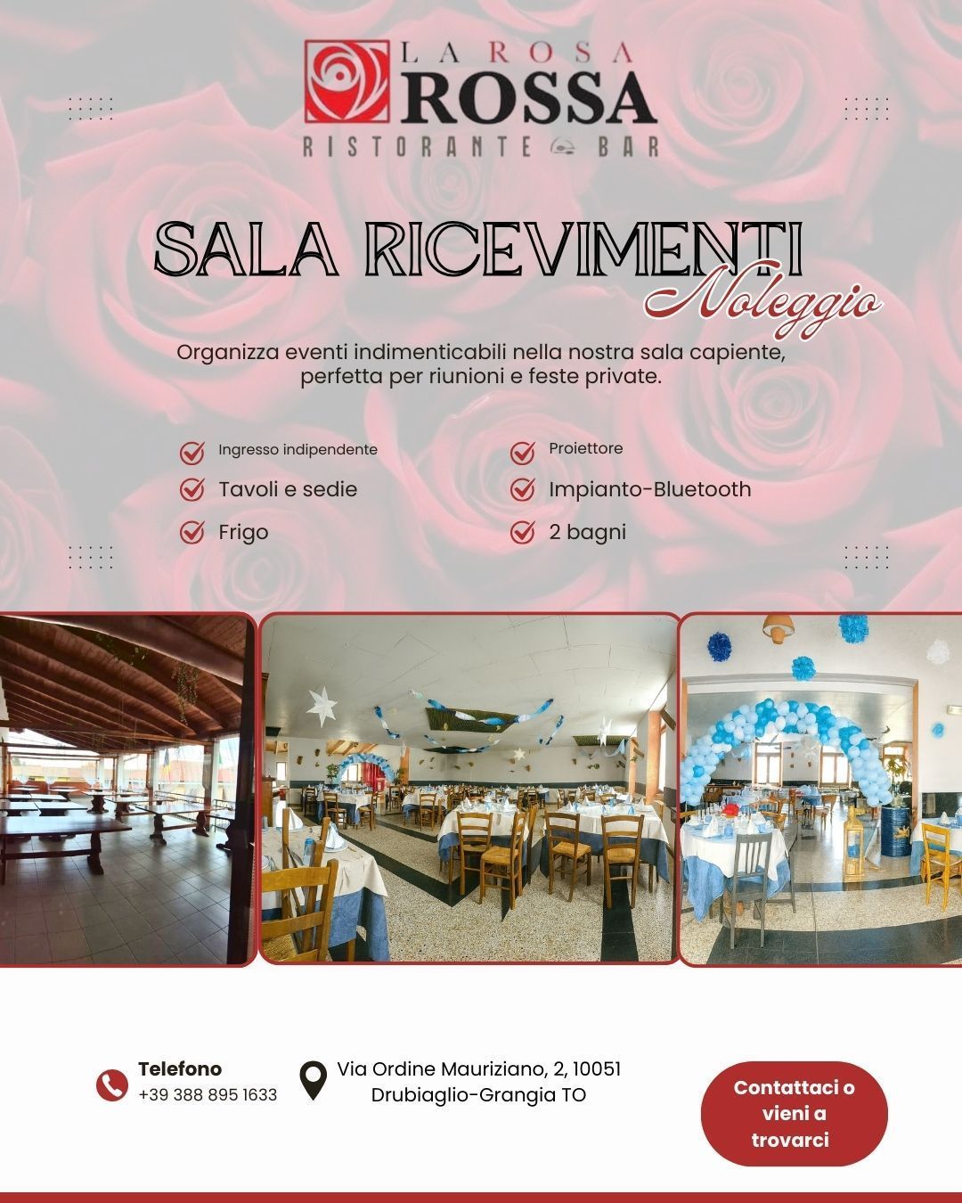 Organizza eventi indimenticabili nella nostra sala capiente, perfetta per riunioni e feste private.